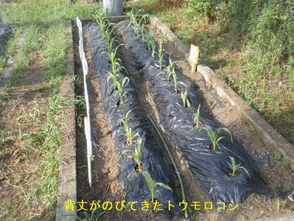 また,トウモロコシは一段と背丈がのびました。早い成長で驚いています。収穫時期を9月に合わせるように努めたいと思いますが,果たしてうまくいくかどうか??