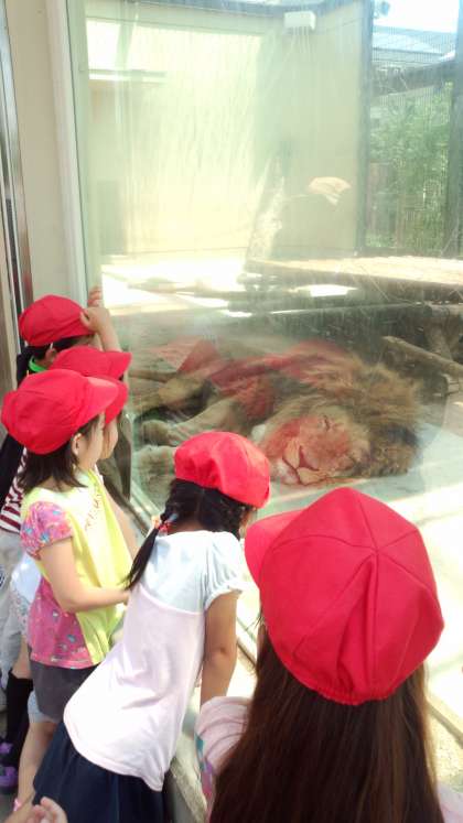 ライオンが少し動くたびに子どもたちも大興奮です!