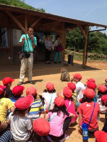 係りの方から猿についての説明を受けています。