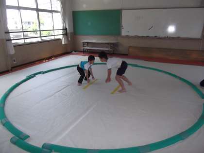 わんぱく相撲京都大会に出場する子ども達が,中間休みに練習をしていました。