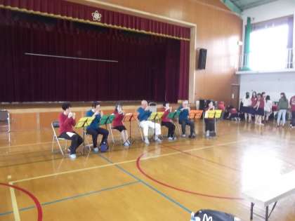 地域の方がオカリナを演奏していただきました。とても綺麗な音色が体育館に響いていました。