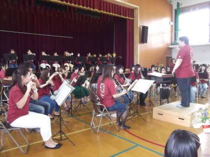 橘大学の皆さんによる演奏もありました。「さんぽ」などいろいろ演奏していただきありがとうございました。迫力のある演奏で子ども達は感動していました。