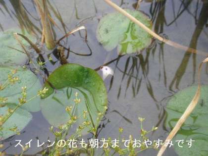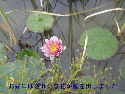 お昼前には,再びきれいな花が開いて,水中に顔を出していました。