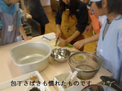 野外炊事と違って家庭科の調理実習は,子どもたちには新鮮味があり,興味津津楽しく実習をしていました。
