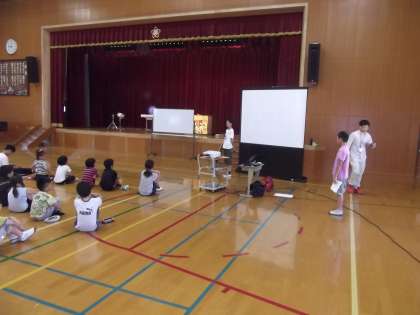 5年生・6年生が1ヶ月かけて醍醐西小のお友だちが,気持ちよく誰にでもあいさつができるようにするためには,どうしたらいいのか話し合ってきました。その話し合いの結果を報告しています。