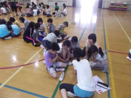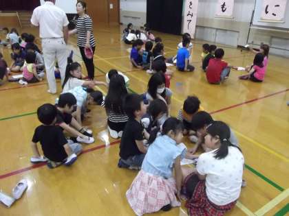 写真は,次回の活動で遊ぶ,遊びをたてわり班で考えています。どんな遊びをするのか楽しみですね。