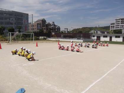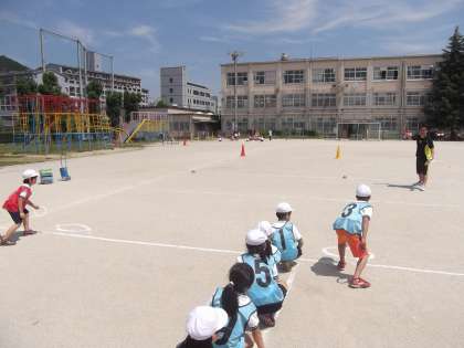 体育の時間に「リレー」を学習しています。いろいろなリレーをしていました。とても楽しそうでした。