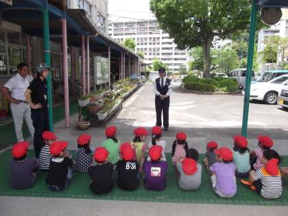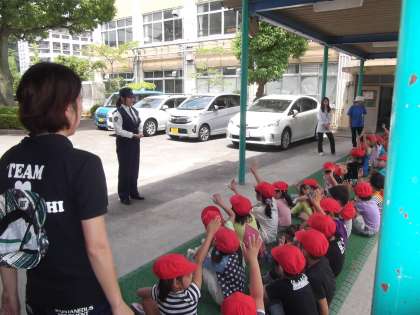 横断歩道のわたり方の実技練習が終了して無事に学校に戻ってました。学校に戻ってきて今日の交通安全教室のふり返りをしていました。