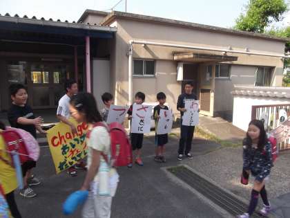 昨日のダイヤ活動で,あいさつ運動について計画委員会から説明がありました。今日の朝からあいさつ運動が始まりました。おはようございます。