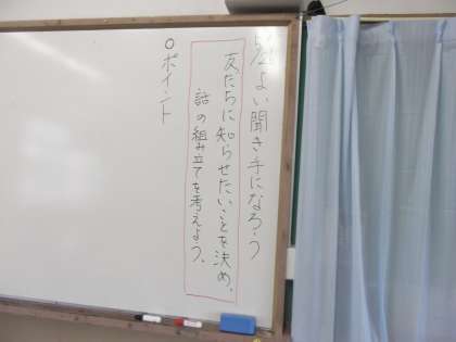 国語の時間に「よい聞き手になろう」を学習しています。今日は,友だちに知らせたいこと決め話の組み立てを考えていました。
