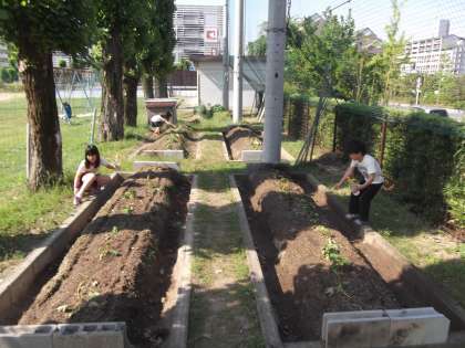 3くみと2年生が毎朝水やりをしてくれています。「里むすめ」も元気に順調に生長しています。