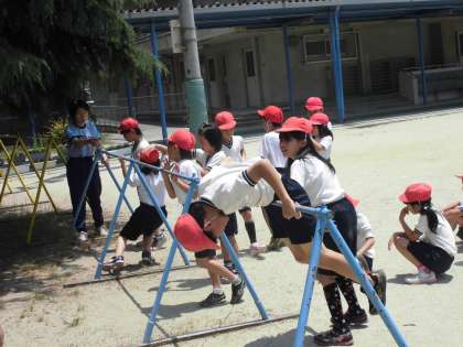 今日から3年生は,鉄棒の学習が始まりました。今日は,今自分できる技を調べました。これから,自分ができそうな技を目標に練習していきます。