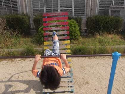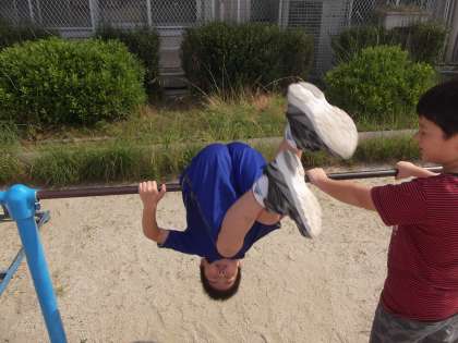 4年生は,体育の時間に「鉄棒」を学習しています。朝休みの時間に運動場に出てみると鉄棒で4年生が自主練習をしていました。嬉しくなって思わず写真をとりました。