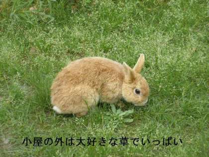 昨日は雨で出られなかったので,今日はうさぎ小屋から外に出してやりました。