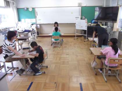 3くみさんは,ひらがなの練習や,漢字練習,算数すごろくなどをしていました。