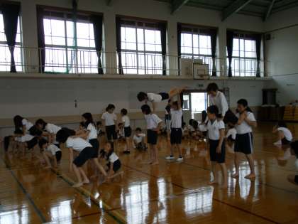 早速,6年生,1年生が体育の授業で使いました。これからも2足制を守り,使用後のモップかけを忘れずにいつまでもきれいな体育館を維持したいものです。