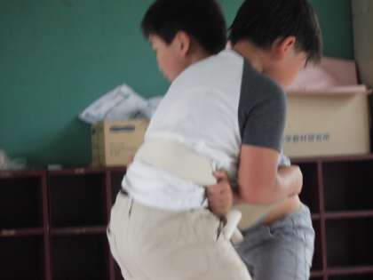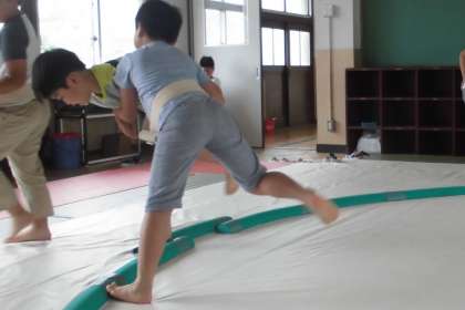 今日も暑い中,わんぱく相撲に向けて一生懸命練習しました。先生方のアドバイスを聞いて相手を押し出そうとする姿もさまになってきました。わんぱく相撲本番が楽しみです。
