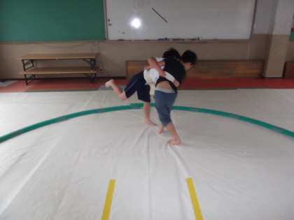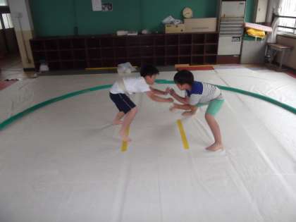 雨が降り少し蒸し暑い日です。しかし,その状況の中,子ども達はわんぱく相撲京都大会に向けて稽古に励んでいます。