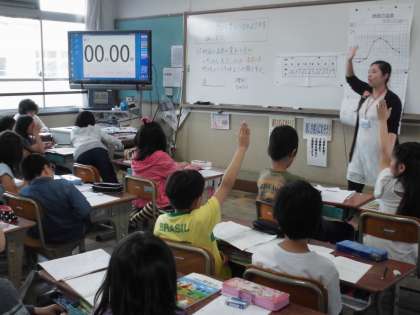 算数の時間に「折れ線グラフ」を学習しています。今日は,グラフの変わり方を調べています。