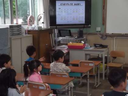 音楽の時間に「どうぶつラップであそぼう」を学習しています。今日は,リズムにあわせてどうぶつラップを楽しんでいました。