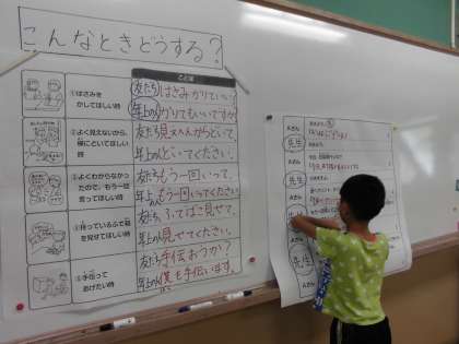 1時間目 朝の会と算数、2時間目 国語、3時間目 道徳、 4時間目 避難訓練