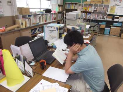 明日からの授業の準備をしています。どの子も「楽しい・わかる・できる」が実感できる授業が行えるように教材研究をしています。