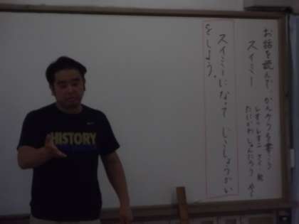 国語の時間に「スイミー」を学習しています。今日は,スイミーになって自己紹介をしていました。
