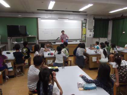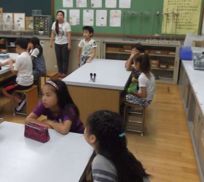 「青色と赤色の懐中電灯どっちが明るく光ると思う?」この質問を考えることから始まった4年生の理科授業。子ども達は,使う電池の数が多いほど豆電球が強く光ると予想しました。次回は,子ども達が考えた一番強く光る電池のつなぎ方を実験して確かめます。