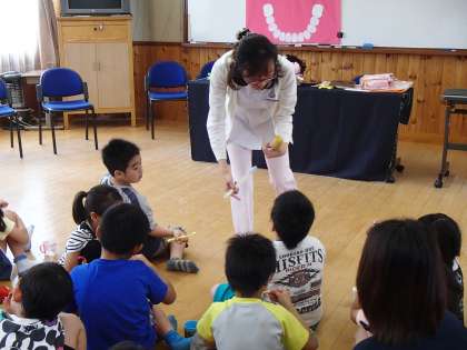 「どんな歯ブラシが自分に合っているのかな」「どうやって歯ブラシをもったらいいの?」など、歯磨きについて詳しく教えてもらいました。どの子も歯が生えかわる時期です。きれいに次の歯が生えてくるよう、今日の学習を生かして歯磨きに励んでほしいです。