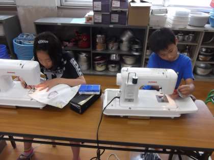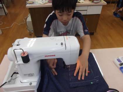 家庭科の時間に「思いを形に生活に役立つ物」を学習しています。今日は,エプロンにポケットをつけていました。