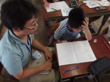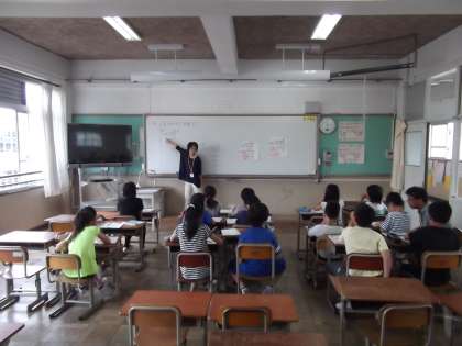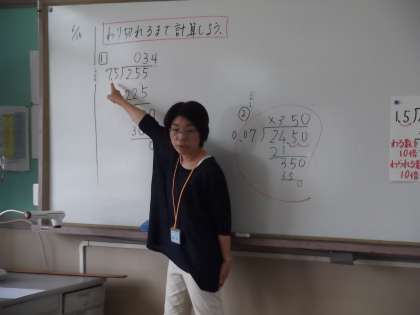 5年生は,小数÷小数の筆算の学習を進めています。今日は,わり進む計算。整数でわるわり算の計算のしかたを生かして小数でもあまりの一つ下の位に0をつけて考えることで,わり進むことができることに気がつきました。3けたで割る計算はとってもたいへんですが,粘り強く問題に取り組む姿が見られました。