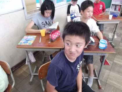 6年生は,フッ化物洗口の日です。リズムに合わせてフッ化物洗口をしていました。