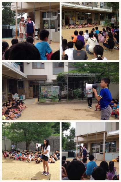 本日の保育交流の解散式です。5年生の子ども達は,とてもいい経験をさせていただきました。保育園のみなさまありがとうございました。また,次回よろしくお願いします。