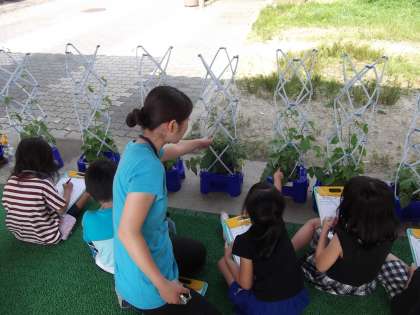 生活科の時間に育てている,「あさがお」の観察をしていました。あさがおが,大きく育っているのを見て子ども達は大喜びでした。