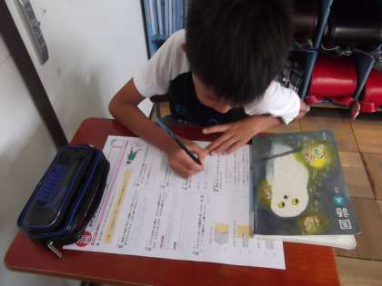 国語の時間に「生き物は円柱形」を学習しています。今日は,まとめテストをしています。テストの結果は・・・
