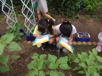理科の時間にひまわりなどの植物観察をしていました。