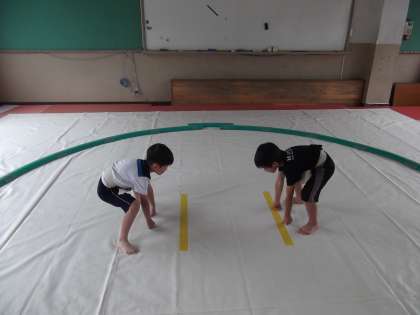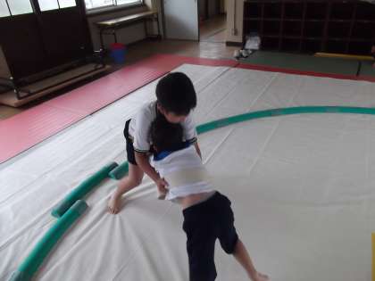 支部相撲大会に向け,稽古を再開しました。久しぶりの稽古で少し疲れたようです。