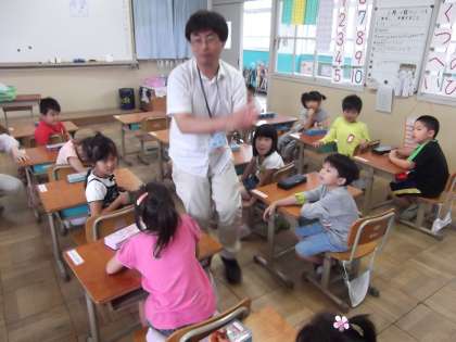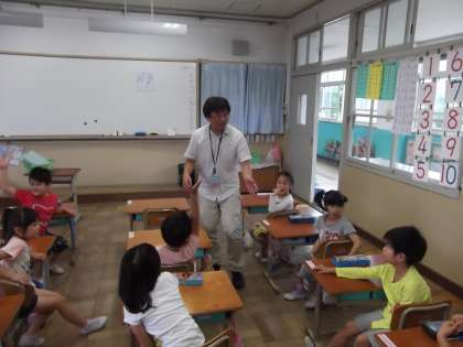 今日もひらがなの学習を行いました。42文字目は「な」でした。「な」書き方をみんなで確かめたあと,「な」のつく言葉で山手線ゲームをしました。パンパンのリズムに合わせて一生懸命「な」つく言葉を言っていく子どもたち。自分の知っている言葉から何とかして言葉探しをしている姿が印象的でした。この山手線ゲームはご家庭でもできます。是非楽しいゲームを通して子どもたちがたくさんの言葉を覚えることができるようにご家庭でもやってみてください。