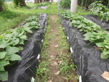 隣の里むすめとの境界線が,分からなくなるぐらい葉が大きく育っています。