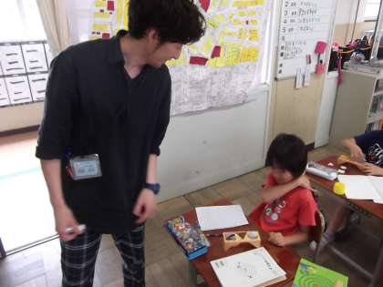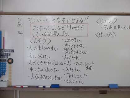 算数の時間にマンホールは,なぜ円の形をしているのかをみんなでかんがえていました。