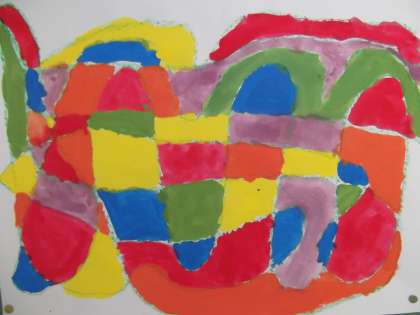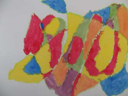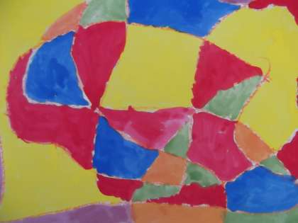 ひとふでで線を書き,出来た部屋に絵の具で色をぬりました。