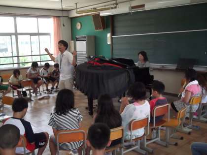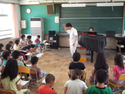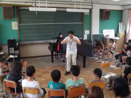 音楽の時間にリコーダー練習をしていました。曲は「エーデルワイス」です。はくの流れにのり,とてもきれいな音色を響かせていました。