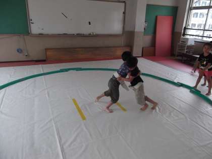 昼休み,1年生も相撲大会に向けて稽古頑張っています。
