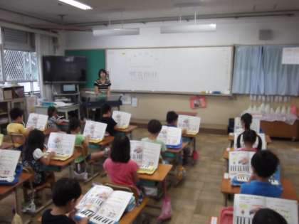 音楽の時間に「けんばんハーモニカ」を練習していました。けんばんハーモニカを習い始めた頃に比べるとずいぶん上手になっています。