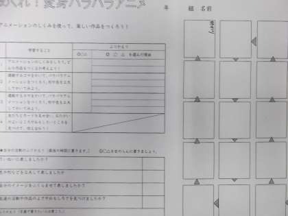図画工作の時間に「めくれ!変身パラパラアニメ」を作っていました。完成が楽しみですね。