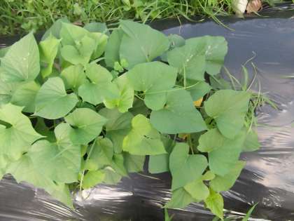 里むすめの畝が大きく育った葉でいっぱいになっています。
