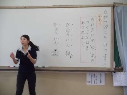 国語の時間に「おもちやとおもちゃひらがな」を学習しています。今日は,ちいさい「や」「ゆ」「よ」の言葉集めをしていました。