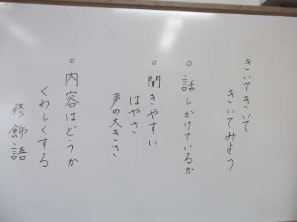 国語の時間に「きいてきいて」を学習しています。今日は,話の意図を考えてきき合い,「きくこと」について考えていました。