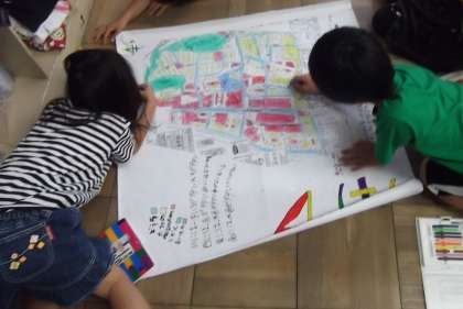 社会の時間に自分たちの町を調べ,そのデーターをもとに地図作りをしていました。