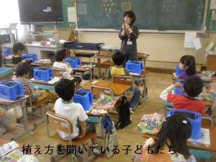 今日は一人一人が育てる「アサガオ」の種をまきました。土を鉢に入れ,種をまいてから肥料もまわりにならべました。